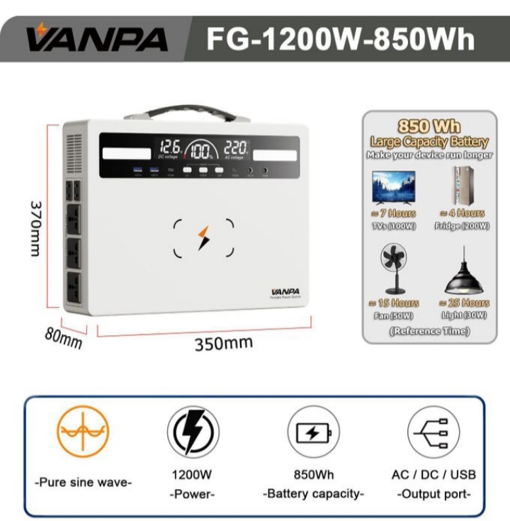 🌟 Powerful 1200W Pure Sine Wave Inverter Provides clean, stable power exactly like the national grid. Safe for laptops, cameras, printers, medical devices (Powers fans, bulbs, routers, TVs, mini-fridges, blenders & more)